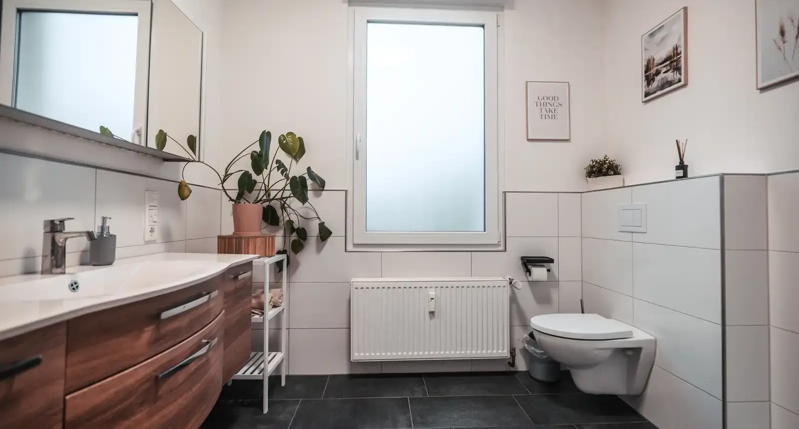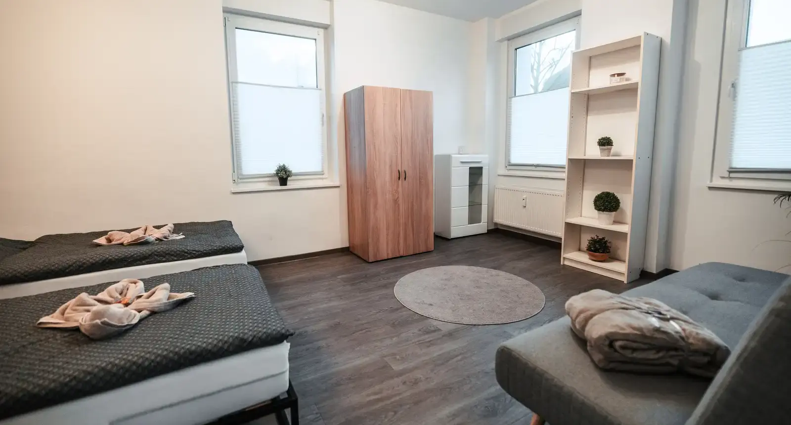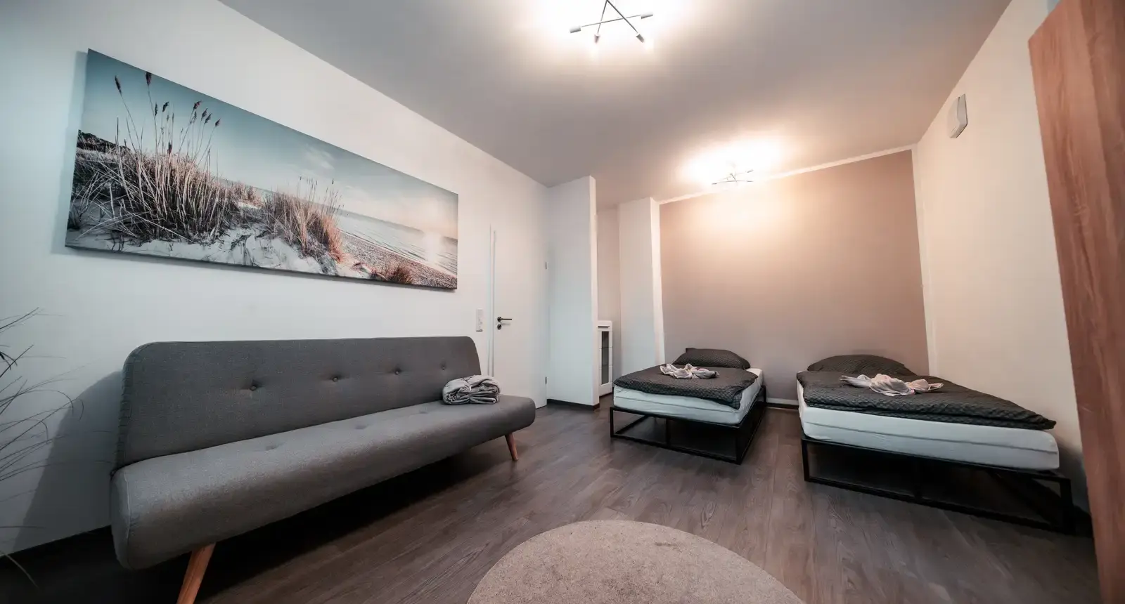 Unsere liebevoll eingerichtete Ferienwohnung liegt im Erdgeschoss eines gepflegten Mehrfamilienhauses und verfügt über einen eigenen Eingang. Auf rund 64 m² bietet sie komfortabel Platz für bis zu 4 Personen. Helle, große Fenster sorgen für ein angenehmes Wohngefühl. Das großzügige Schlafzimmer und das moderne Badezimmer laden zum Entspannen ein. In der offenen Küche mit angrenzendem Essbereich im Wohnzimmer können Sie Ihren Aufenthalt ganz entspannt genießen – komplett ausgestattet mit allem, was Sie für den täglichen Bedarf benötigen.
